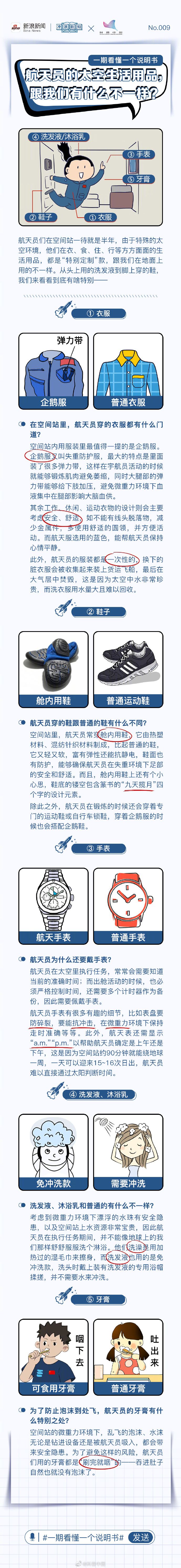 说明书 | 航天员用的太空用品,和我们用的有啥区别? 云上通山——通山县融媒体中心 2023-04-25 16:34 0 神十五的航天员们在空间站一待就是半年,由于特殊的太空环境,他们的各种生活用品都是“特别定制”款,从头上用的洗发液到脚上穿的鞋,与我们在地面上用的大不一样。 中国航天日即将到来,一起来了解↓↓ 来源:科普中国