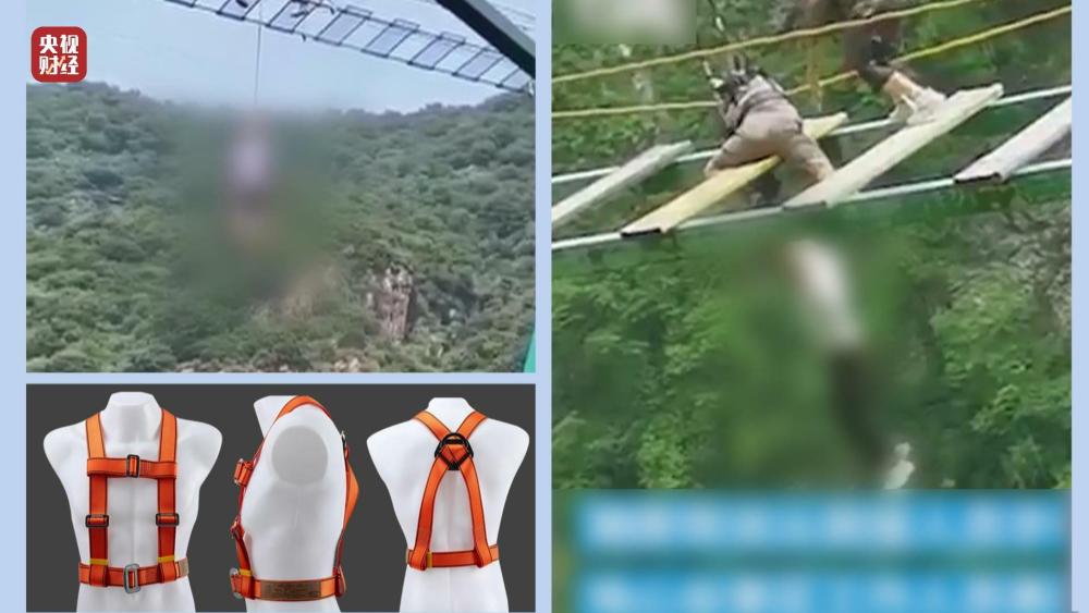 2022年7月22日,天津市蓟州区的九山顶景区,一名游客在“步步惊心”“网红”吊桥项目游玩时,突然昏迷,悬在半空。救援时,安全带突然脱落,游客摔下山谷,不幸身亡。
