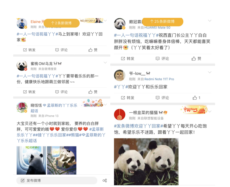 得知“丫丫”即将回国,无数网友在社交平台上留言祝福……