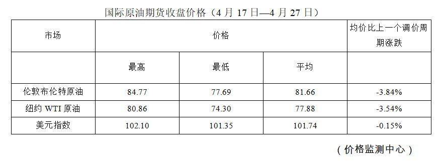 根据国家发改委消息,新一轮成品油调价窗口将于今天(4月28日)24时开启。国家发改委价格监测中心监测,本轮成品油调价周期内(4月17日—4月27日)国际油价下降。平均来看,伦敦布伦特、纽约WTI油价比上轮调价周期下降3.69%。