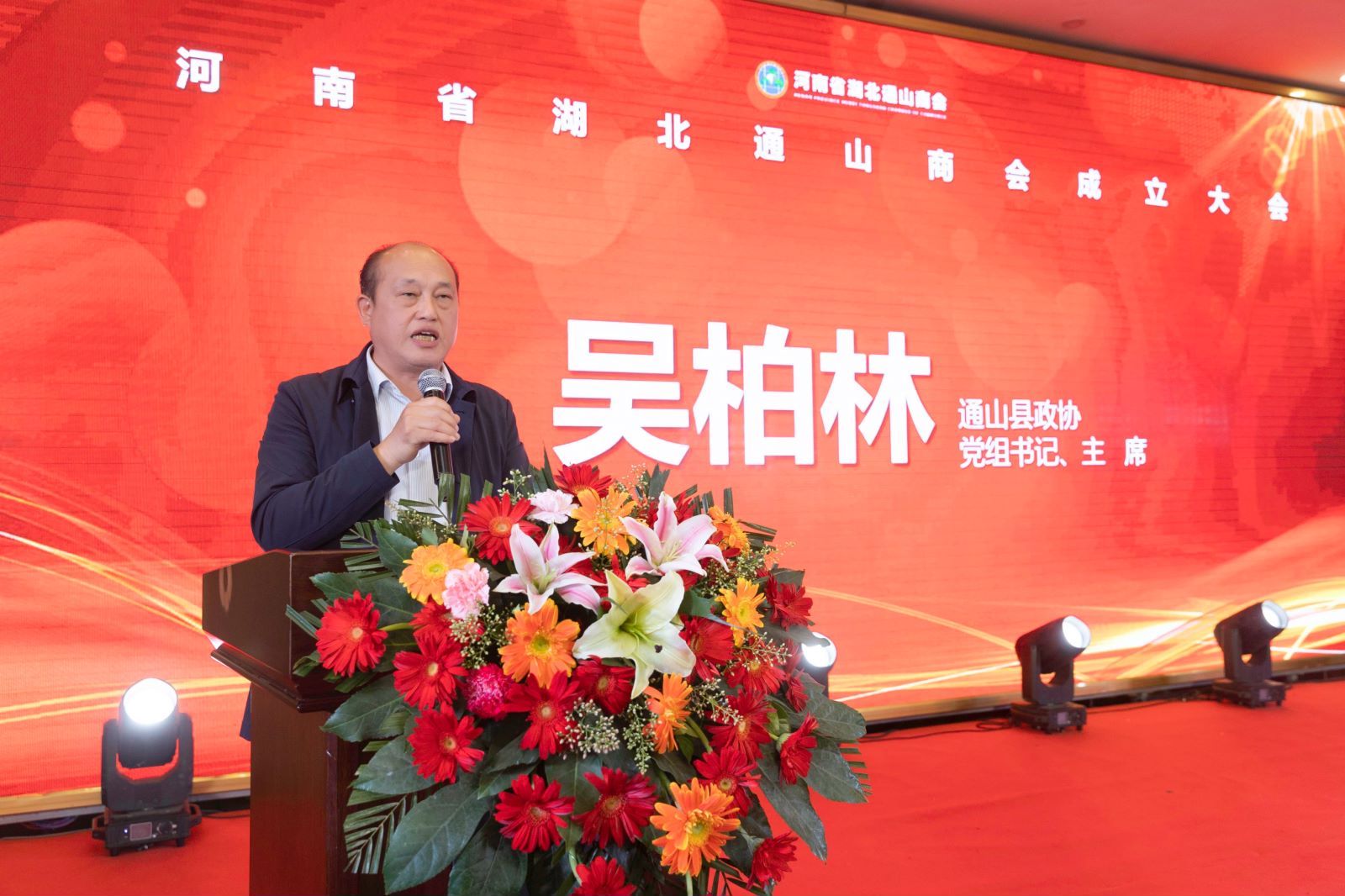 在河南省湖北通山商会成立大会上,县委统战部副部长、县工商联党组书记董安琼宣读县工商联对河南省湖北通山商会第一届领导班子批复;县委组织部部务委员张成宣读关于成立中共河南省湖北通山商会支部委员会批复;河南省湖北通山商会会长涂志澍致辞。