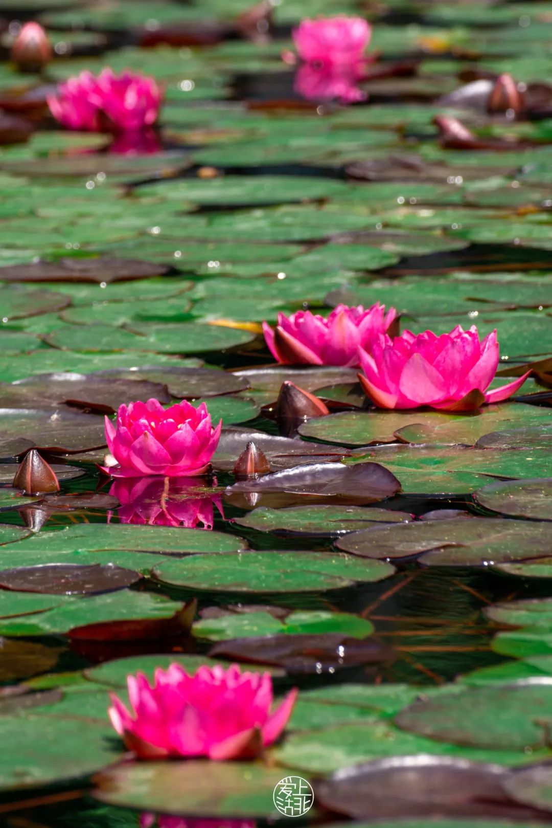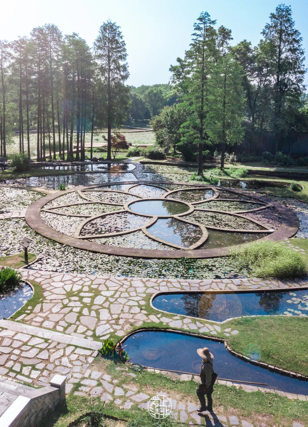 更有诗意的是,主体按照八瓣莲花造型打造的睡莲池塘,同一花瓣内,种着同一色系的睡莲。印度红睡莲、埃及蓝睡莲、墨西哥黄睡莲、中国延药睡莲、泰国招财女神……方寸之间,别有洞天。