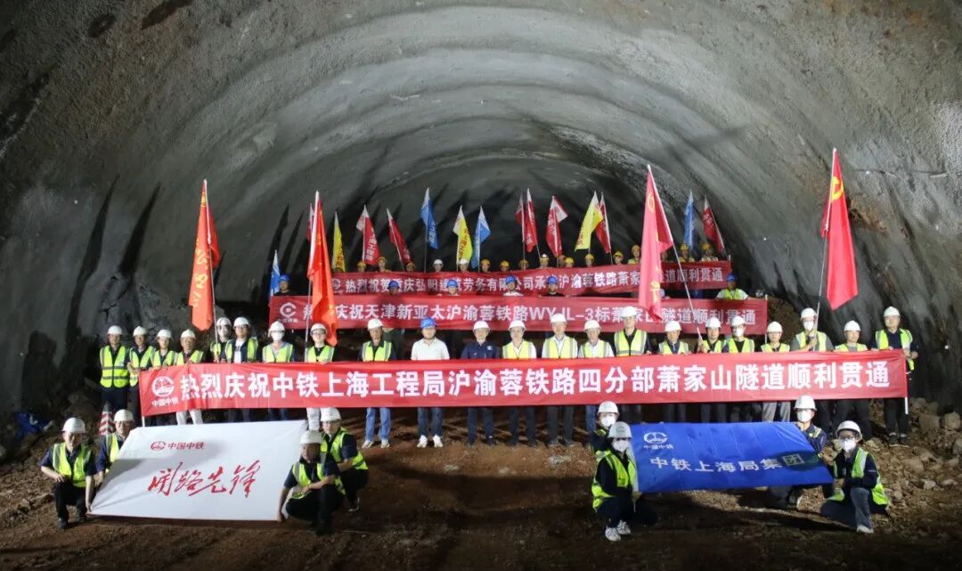 5月14日上午,历经390天的日夜奋战,沪渝蓉高铁武宜段WYZQ-3标萧家山隧道顺利贯通,这是沪渝蓉高铁武汉通往宜昌方向的第一座隧道。
