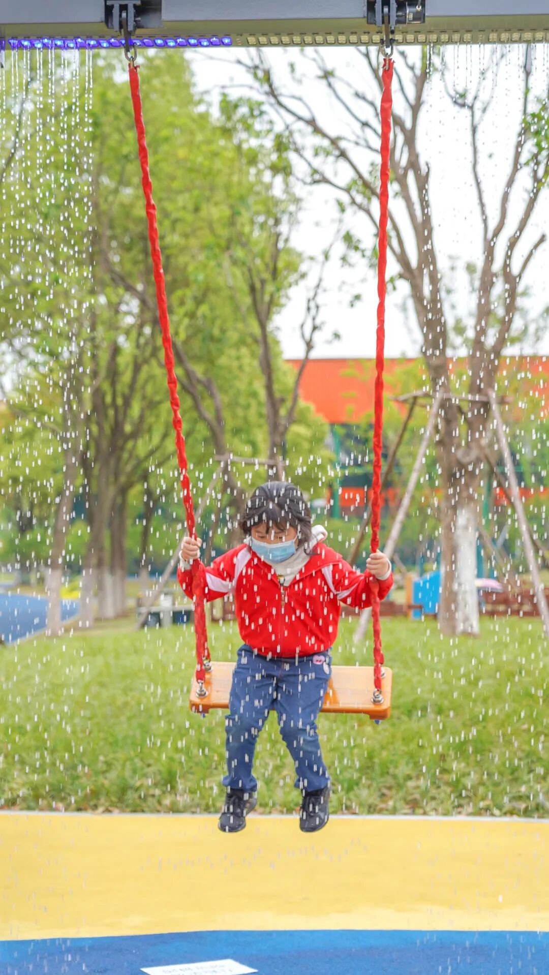 水幕秋千最为孩子们所喜欢,在一道水帘之中来回晃荡,但丝毫不会被淋湿。