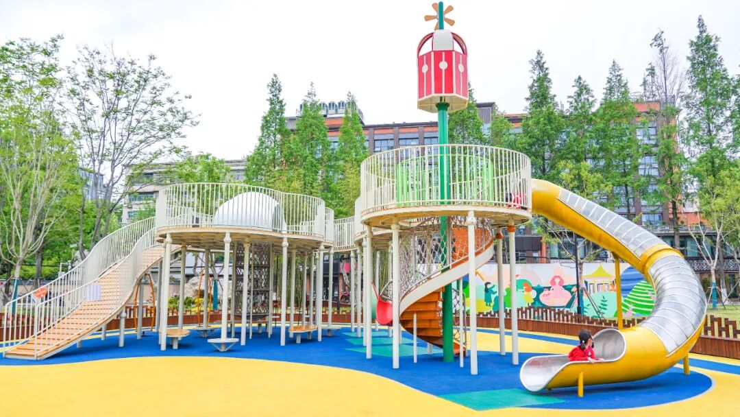 万科虫洞公园的游乐设施非常丰富,攀爬、滑梯、传声筒、秋千......应有尽有。