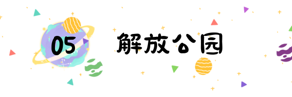 解放公园绿草茵茵的草坪,是小朋友的乐园。放风筝、荡秋千、野炊、坐游船的绝佳地点,带他/她亲近大自然,感受初夏的快乐。