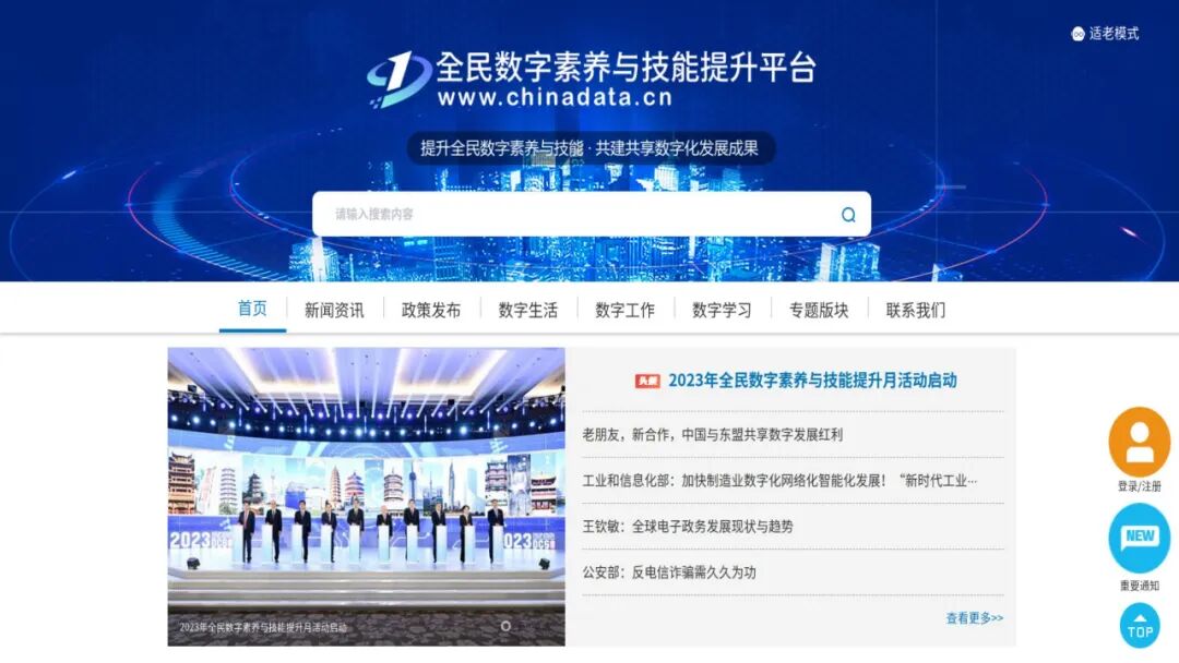 由中央网信办、中央党校(国家行政学院)共同指导,由中央党校(国家行政学院)电子政务研究中心、信息技术部建设运营的学习平台“全民数字素养与技能提升平台”(网址:https://www.chinadata.cn/)上线了,平台围绕数字生活、数字学习、数字工作、数字创新等方面开发了许多高质量实用性强的免费课程资源,对提升全民数字素养与技能有很大帮助。