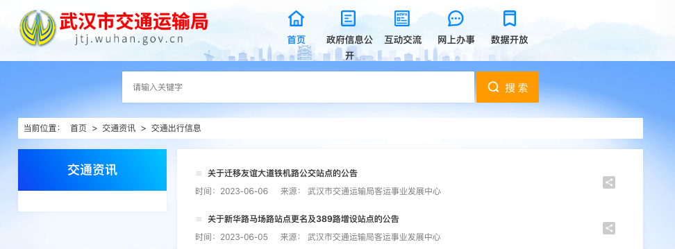 近日,武汉市交通运输局网站发布提醒信息,拟对部分公交站点进行调整,站点更名、迁移、增设等,大家出行请注意。
