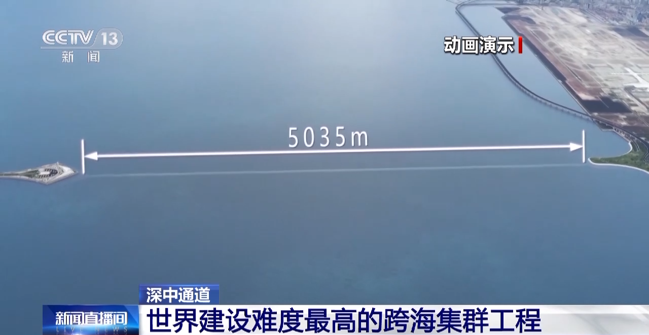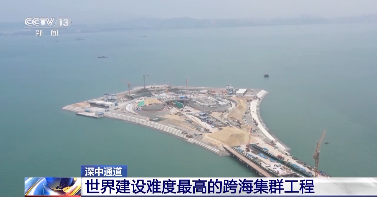 深中通道管理中心主任 总工程师 宋神友:未来,珠江西岸的人跟深圳机场以及前海实现快速交通转换,就是通过在东岸设置了一个高速公路水下枢纽互通立交的形式,所以最终深中通道项目就是采用了桥岛隧水下枢纽互通于一体的跨海集群工程。