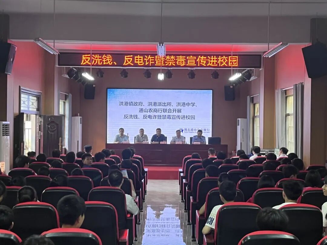 6月9日在洪港中学举办禁毒反诈反洗钱宣讲教育活动的现场,镇政府工作人员与派出所民警为广大师生、家长广泛讲解常见电信网络诈骗形式和应对方法,用通俗易懂的语言,结合现实案例讲解电信网络诈骗、观看防诈影片等,运用多种“零距离”解读的宣讲方式,引导师生、家长要自觉提高警惕、抵制金钱诱惑,筑牢思想防线,守护好自己的“钱袋子”。