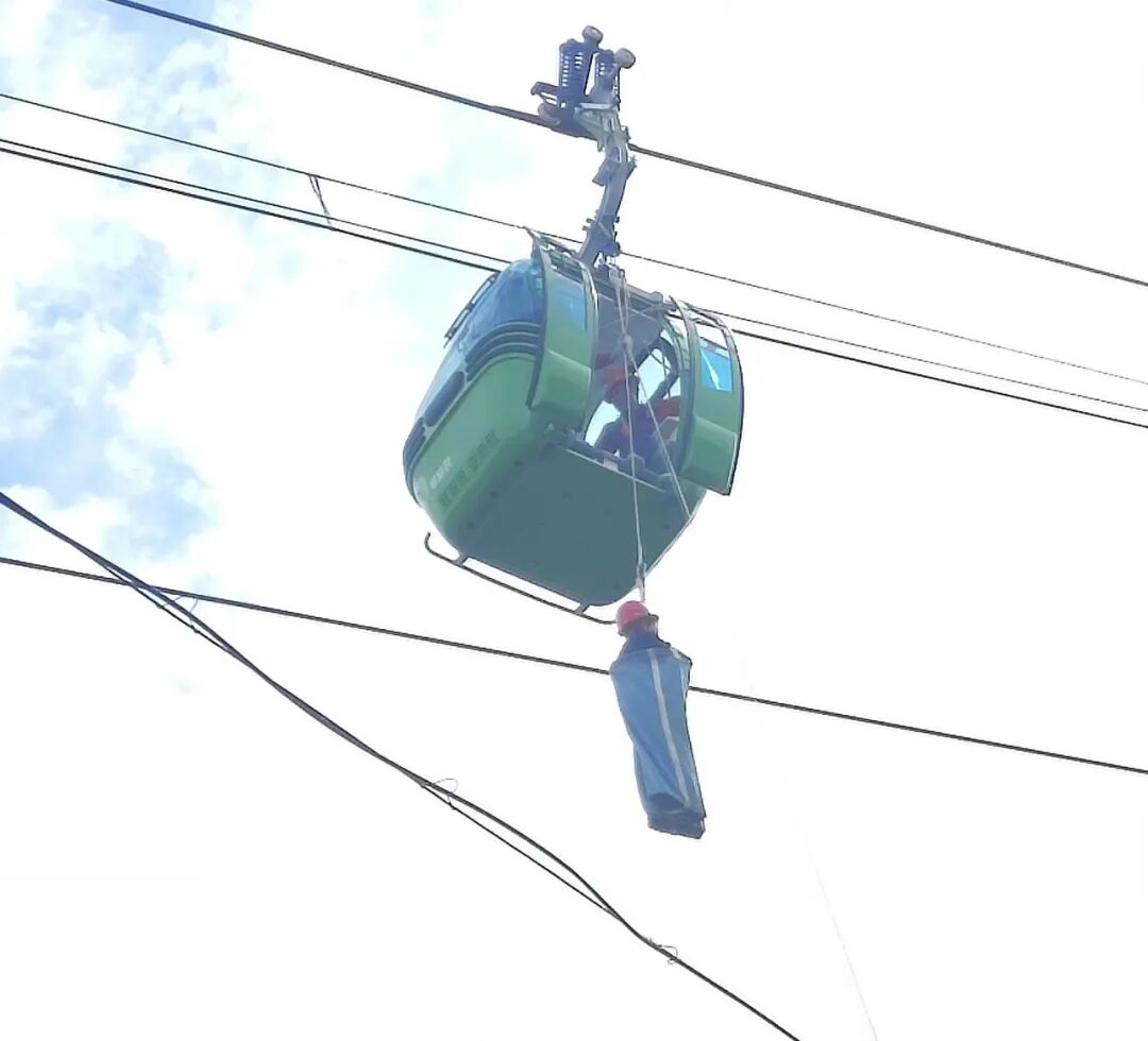 “现有旅客被困在索道吊箱之中,各部门注意,请立即展开施救!”上午8点30分,应急救援演练正在开始。