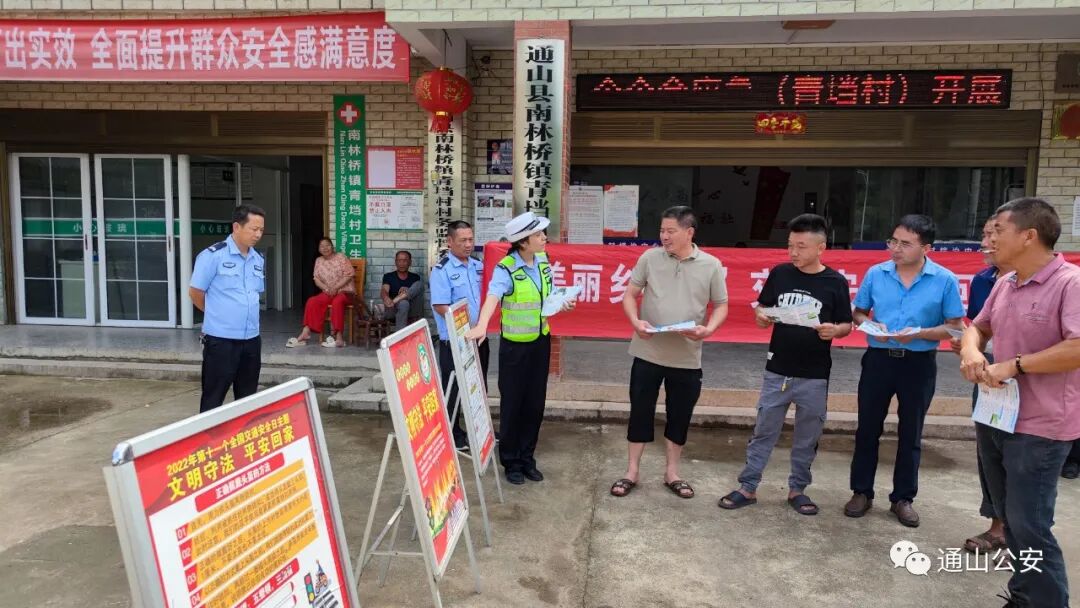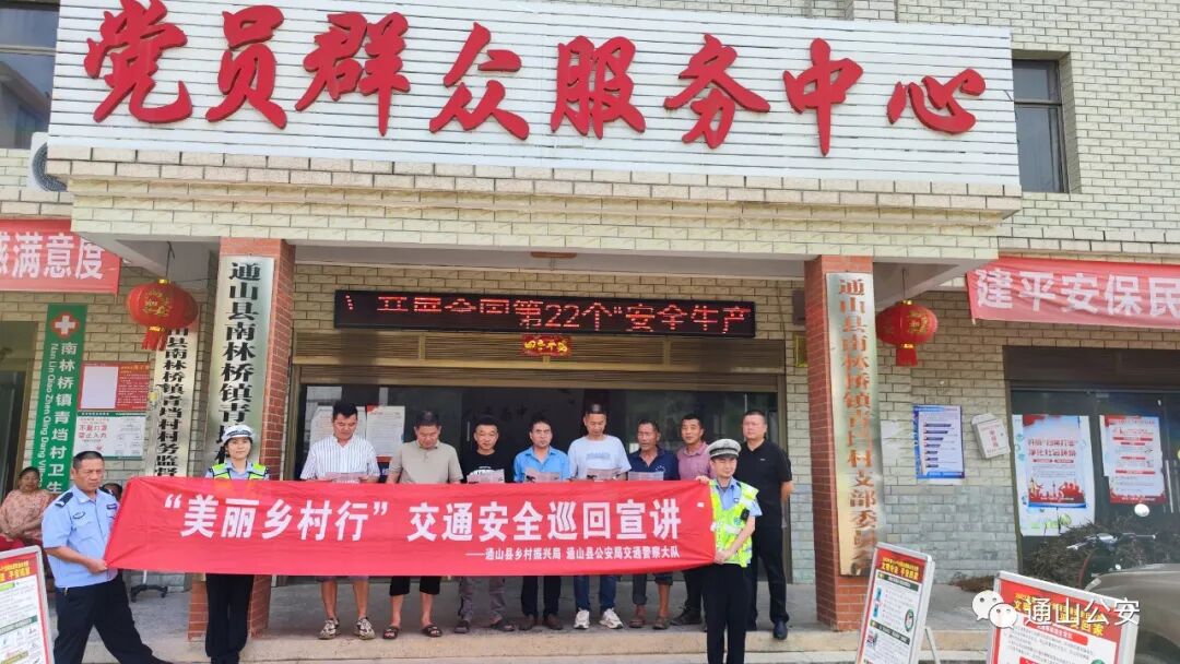 云上通山报道:(通讯员 齐丹丹)今年6月是第22个全国“安全生产月”,为切实做好夏季农村道路交通事故预防工作,不断提升农村群众“知危险 会避险”意识,通山县公安局交警大队联合县乡村振兴局及楠林桥派出所走进楠林桥镇大坪村和青垱村开展“美丽乡村行”交通安全巡回宣讲活动,让交通安全走进生活、贴近群众,做到“人人讲安全、个个会应急”。