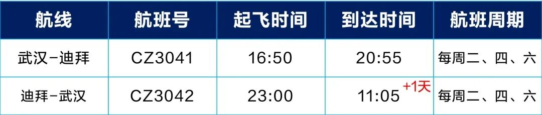 南航武汉直飞迪拜航线