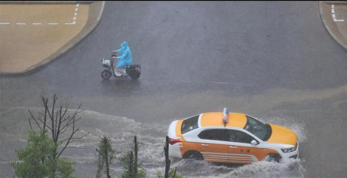 2021年6月27日武汉城区出现强降水,出租车涉水前行 图片来源:中新网
