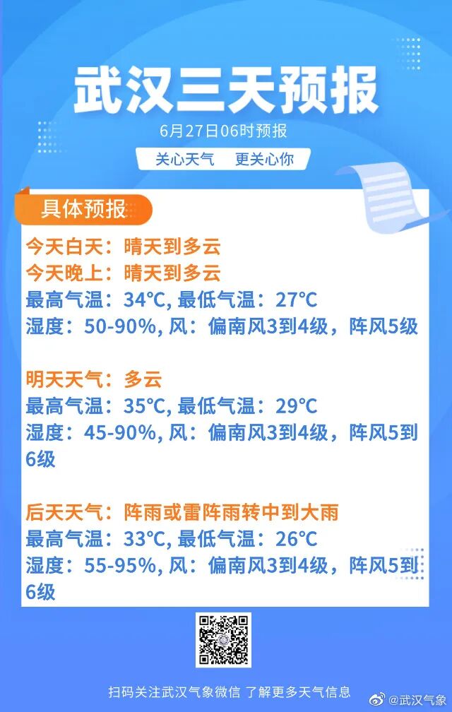 后天,西部地区有中到大雨局部暴雨,江汉平原和鄂东北由阴天转为大到暴雨、局部大暴雨;其他地区由阴天转阵雨。受降雨影响,鄂西南高温降至25~27℃,鄂东南仍在32~35℃,其他地区则在28~32℃。