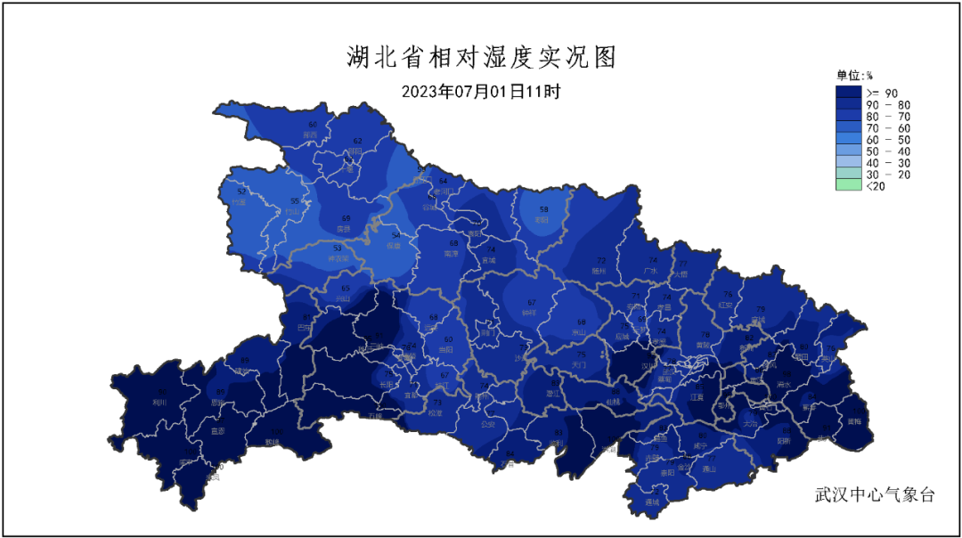 鄂西北、江汉平原北部、鄂东北西部阴天有中到大雨,局部暴雨;其他地区多云有阵雨或雷阵雨。