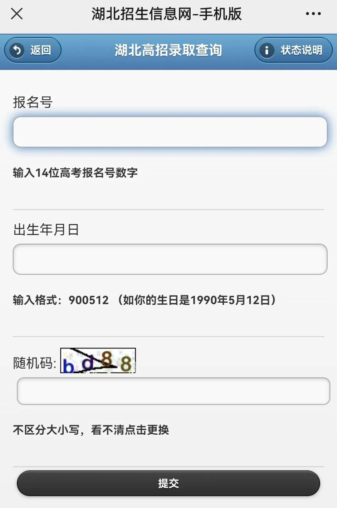 填写验证码即可查询录取状态