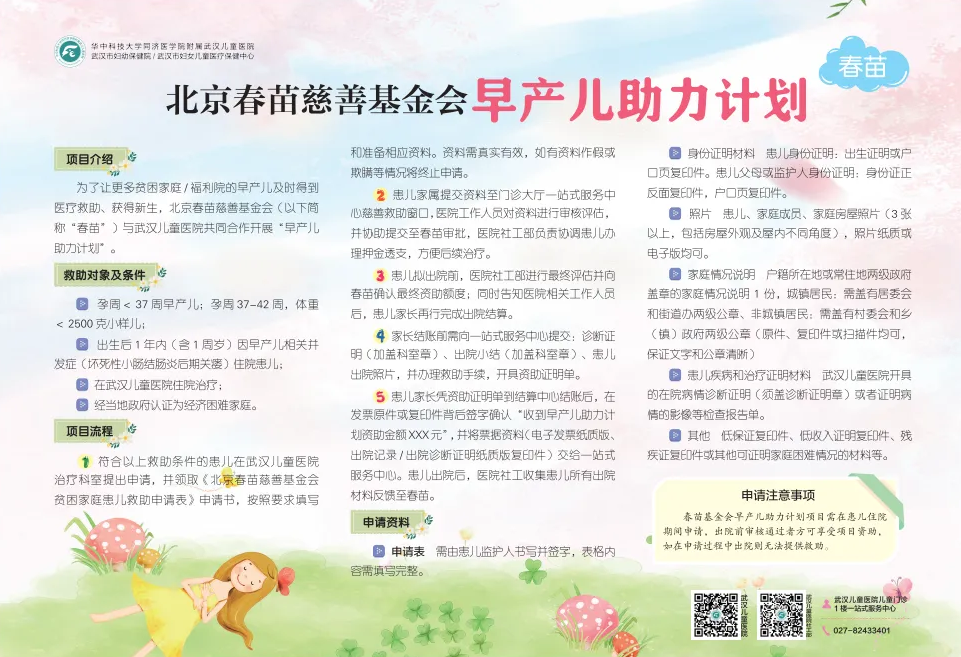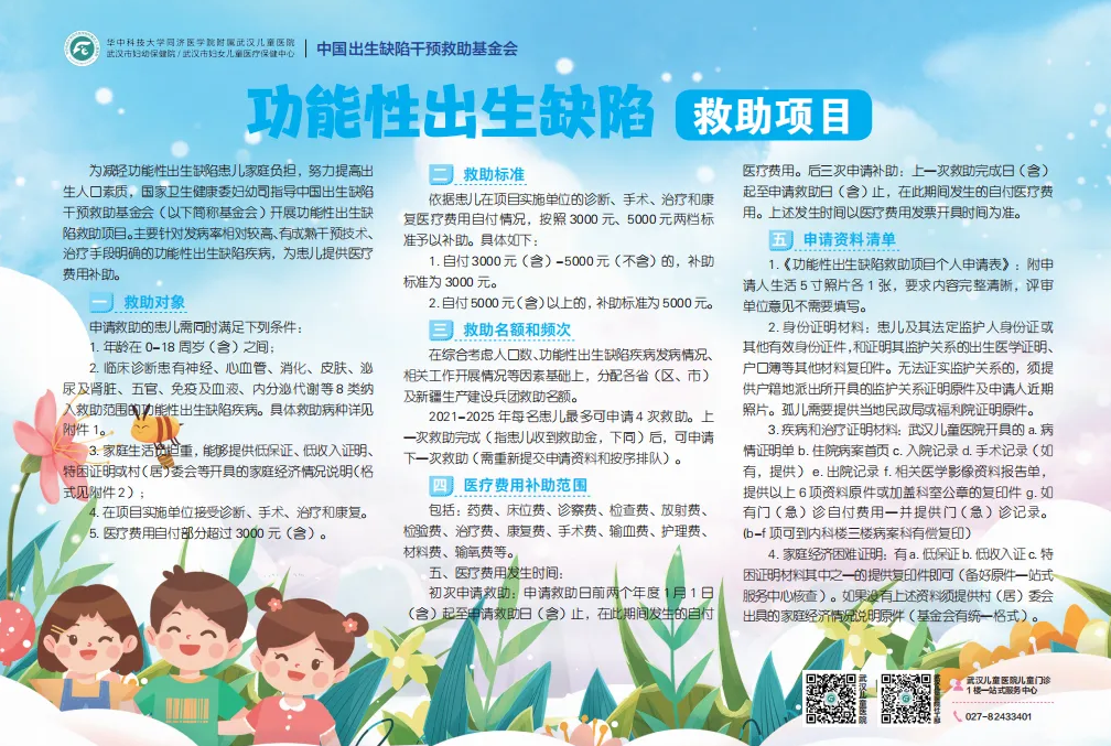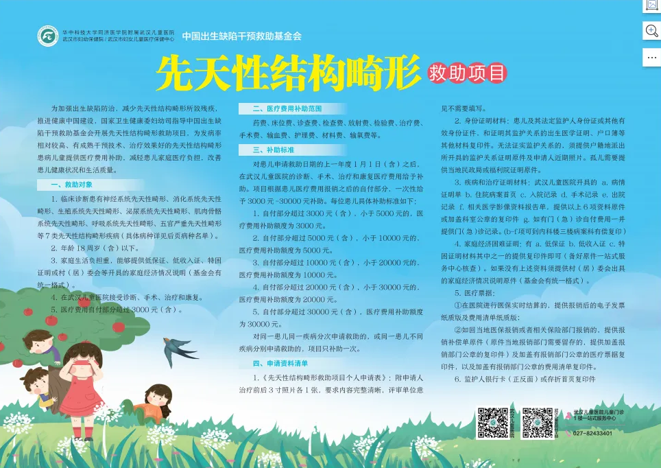 针对孤贫出生缺陷(先天性脑积水、巨结肠、胆总管囊肿、小肠闭锁、肛门闭锁、马蹄内翻足、坏死性小肠结肠炎等)及孤贫早产儿,最高资助4万元!