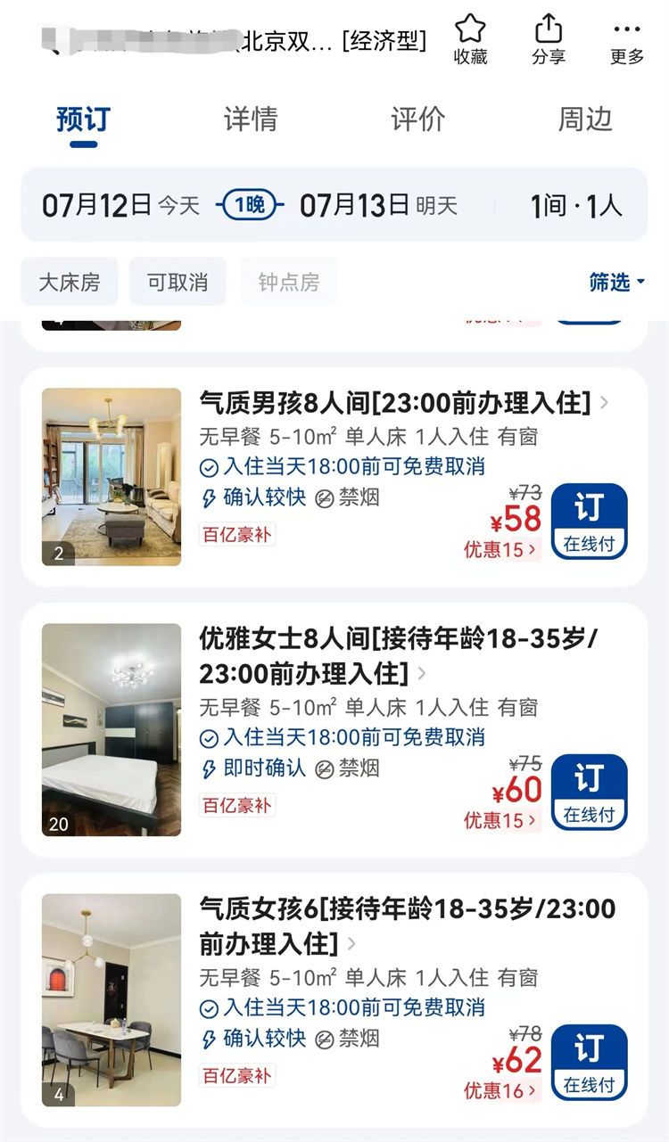 近日,有网友在某社交平台上发帖吐槽,称北京市内多家青旅拒绝接待35岁以上的中年人,“平台上不少商家拒绝35+入住,好容易找到了一个没有备注这个要求的,通电话的时候,居然也提了这种条件。”