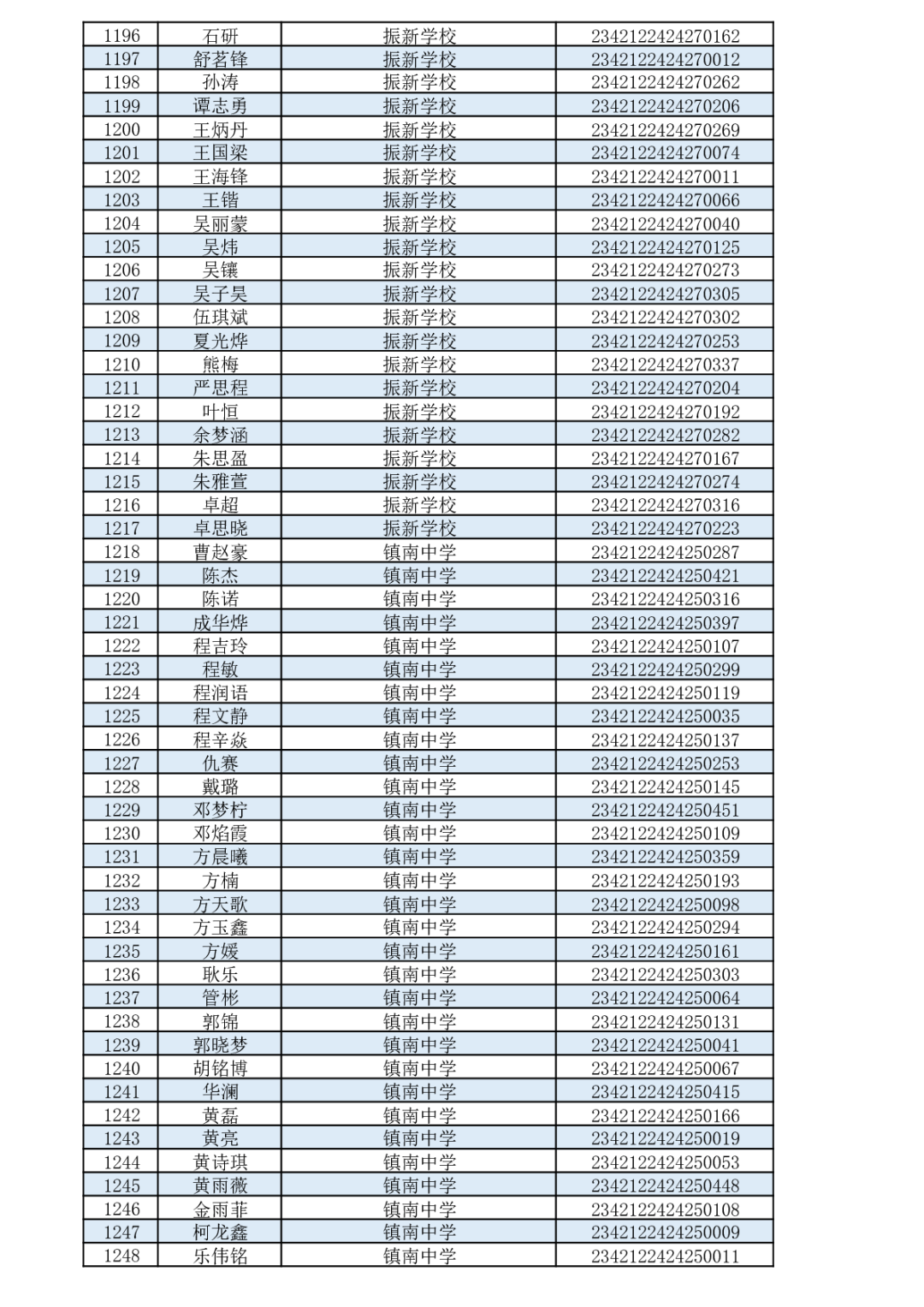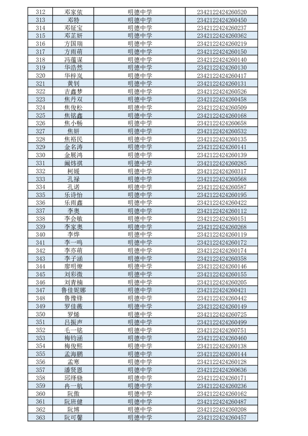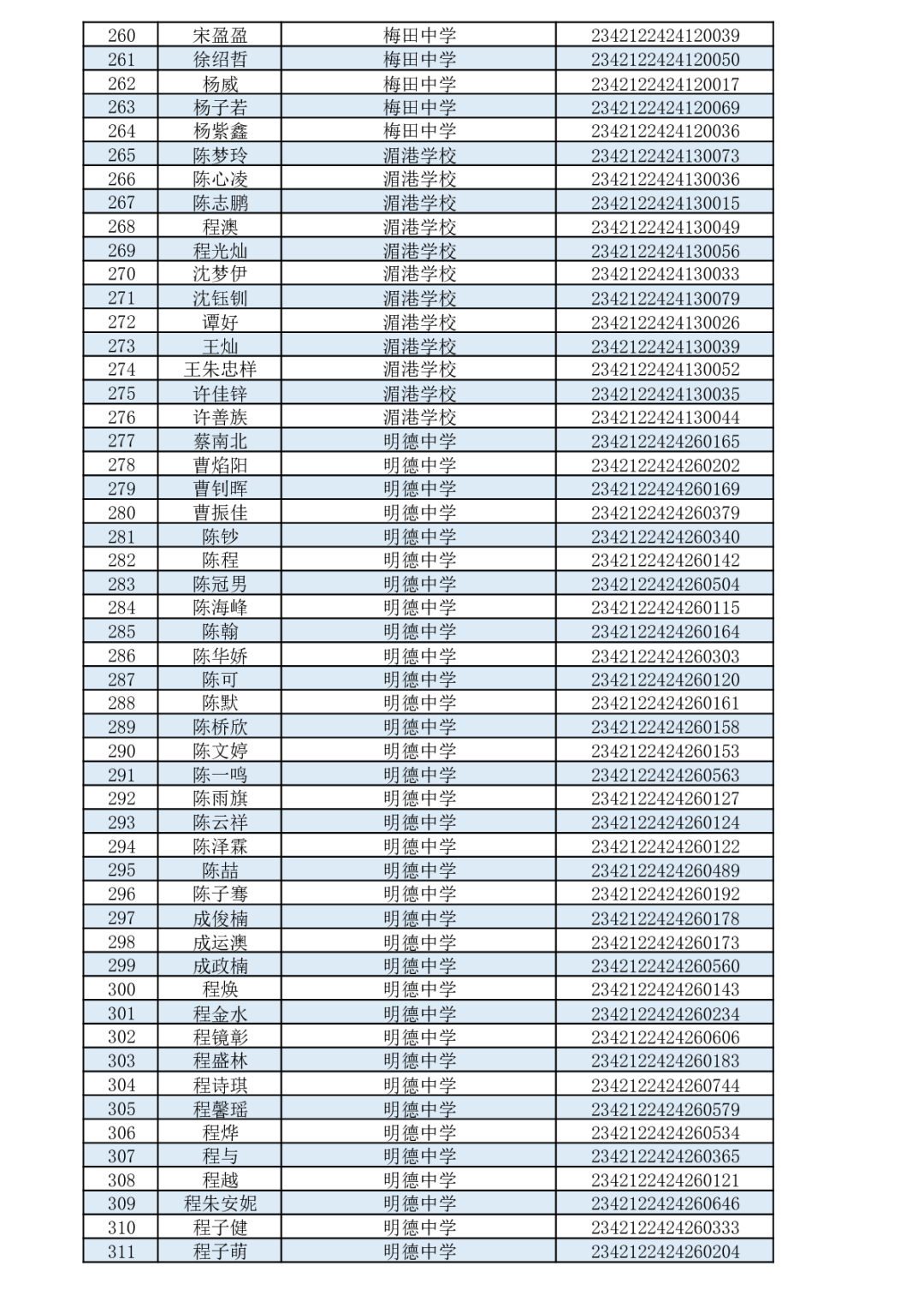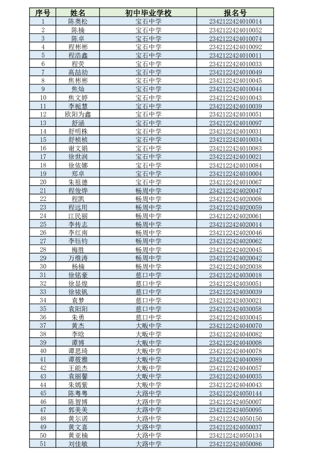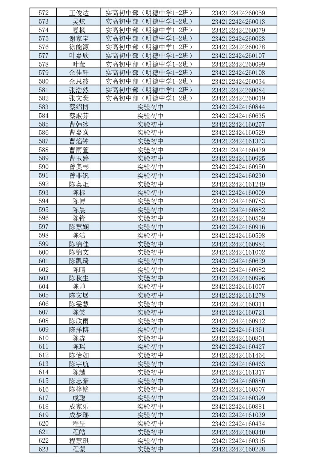 通山一中2023级新生录取名单 云上通山——通山县融媒体中心 2023-07-13 18:29 0 各位家长、各位同学: 九年芸窗为中考,一朝金榜喜题名。选择一中,选择成功!根据个人志愿,通过咸宁市考试院招生平台统一录取,下列优秀学子成为我校2023级高一新生,特此恭贺!录取名单如下(按照毕业学校和姓名首字母排序): 来源:湖北省通山县第一中学