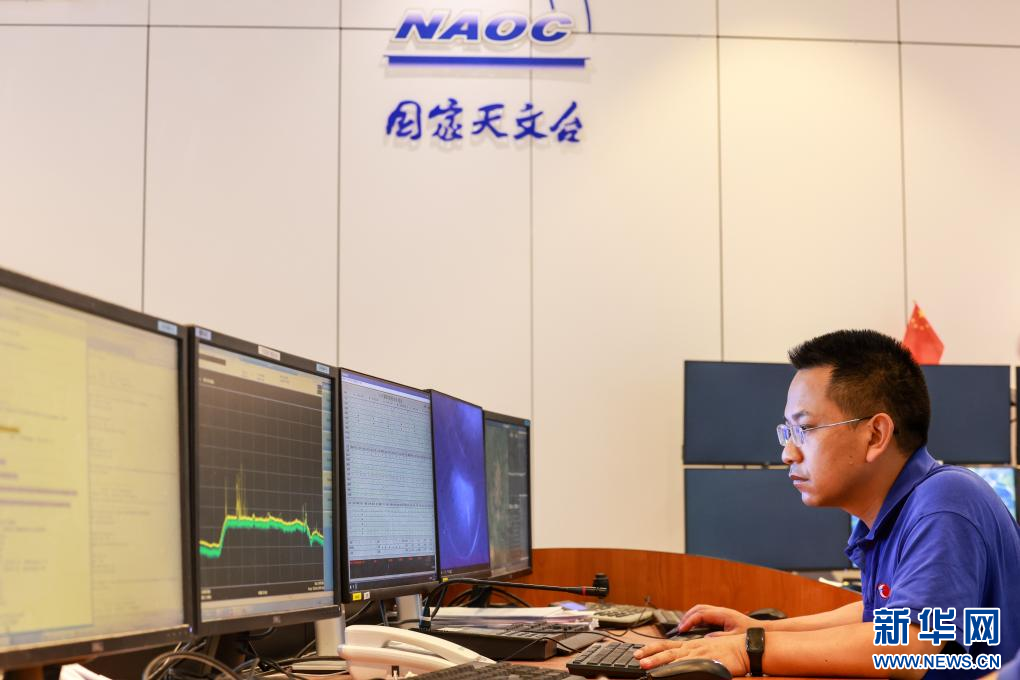 7月25日,工作人员在“中国天眼”总控室内工作。