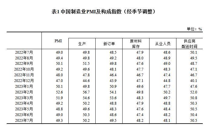 国家统计局网站31日发布2023年7月中国采购经理指数运行情况。7月份,制造业采购经理指数(PMI)为49.3%,比上月上升0.3个百分点,制造业景气水平持续改善。