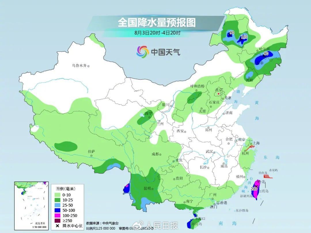 8月1日夜间开始,北方的降雨重心将转移到东北一带,核心时段为今明两天,核心区域在黑龙江南部、吉林中北部。预计,1日夜间至4日,内蒙古东部、东北地区多阵雨或雷阵雨天气,其中内蒙古东北部、吉林、黑龙江等地部分地区有大到暴雨,局地有大暴雨。上述部分地区伴有雷暴大风或冰雹等强对流天气。中央气象台1日晚继续发布暴雨蓝色预警。