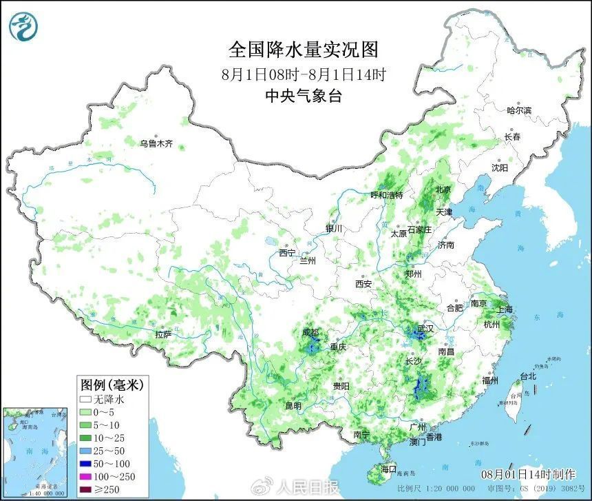 8月1日白天,华北的降水终于明显减弱。不过,受地形因素影响,在太行山东麓沿山地区,仍有局地强降雨,像是河北安新、辛集、巨鹿以及河南焦作,1日08时至14时降雨量都超过30毫米。