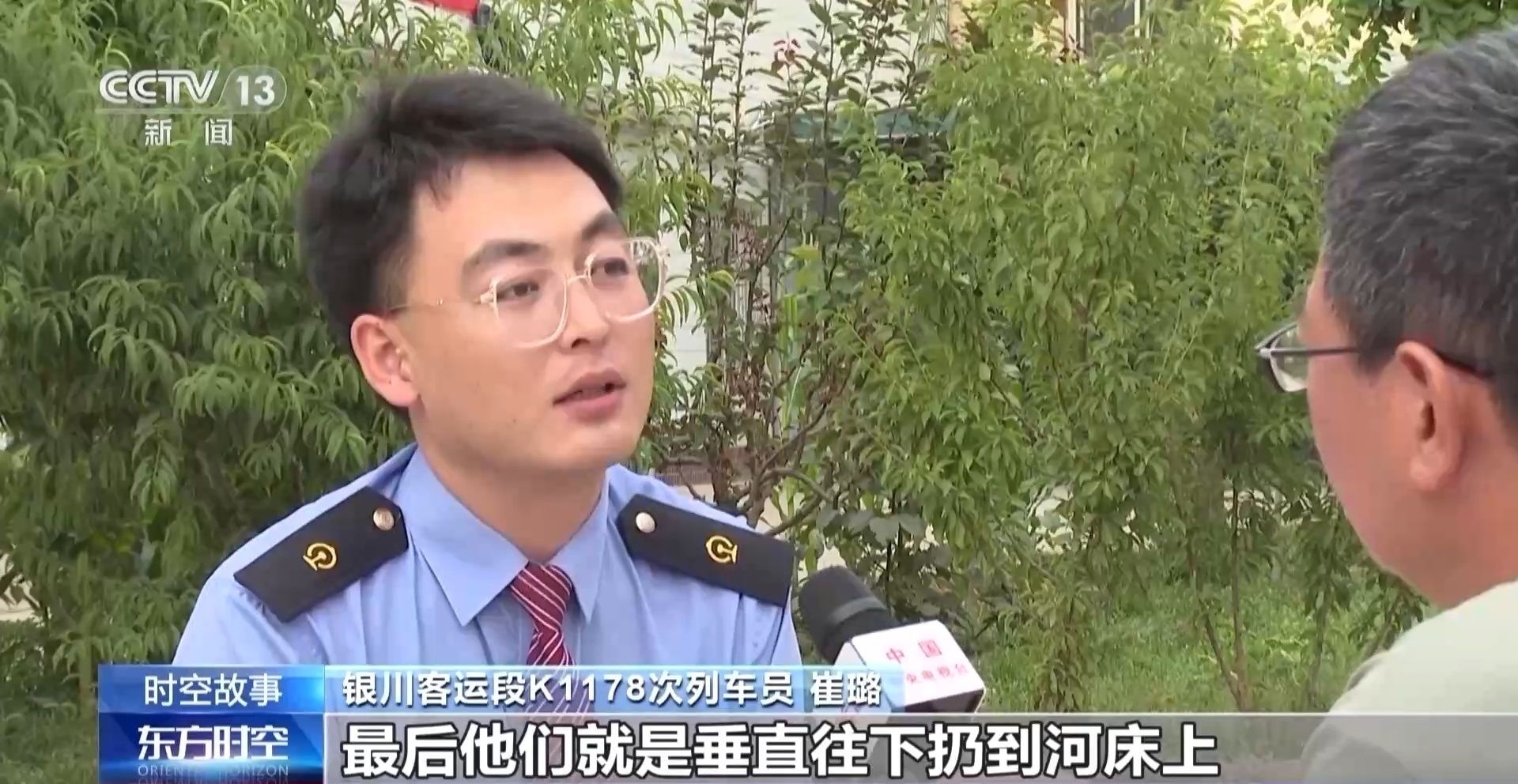 银川客运段K1178次列车员 崔璐:因为沿河城下面还有一个特别深的水沟。最后他们就是垂直往下扔到河床上,这样会好一点,我们就下河床去捡这个物资。