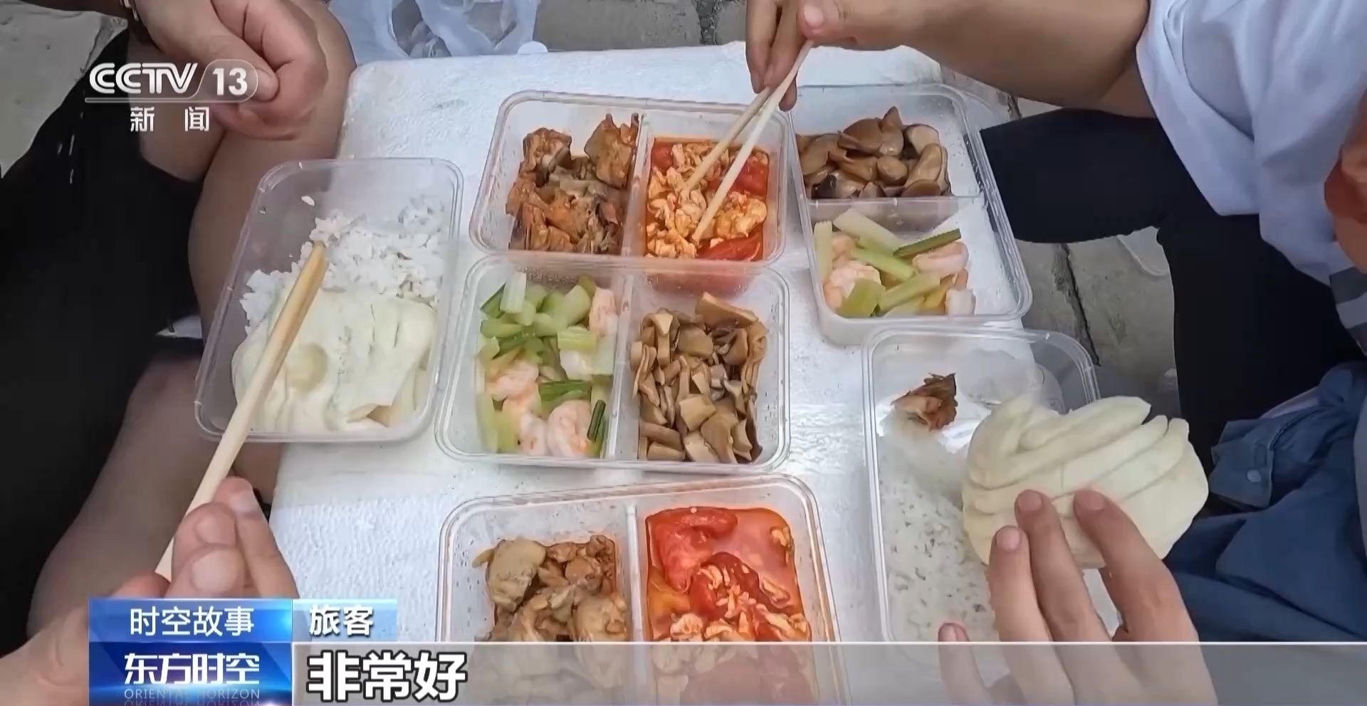 14:20救援列车抵达沙城站,铁路部门为乘客们提供了免费餐食,三天来大家第一次吃到了正餐。
