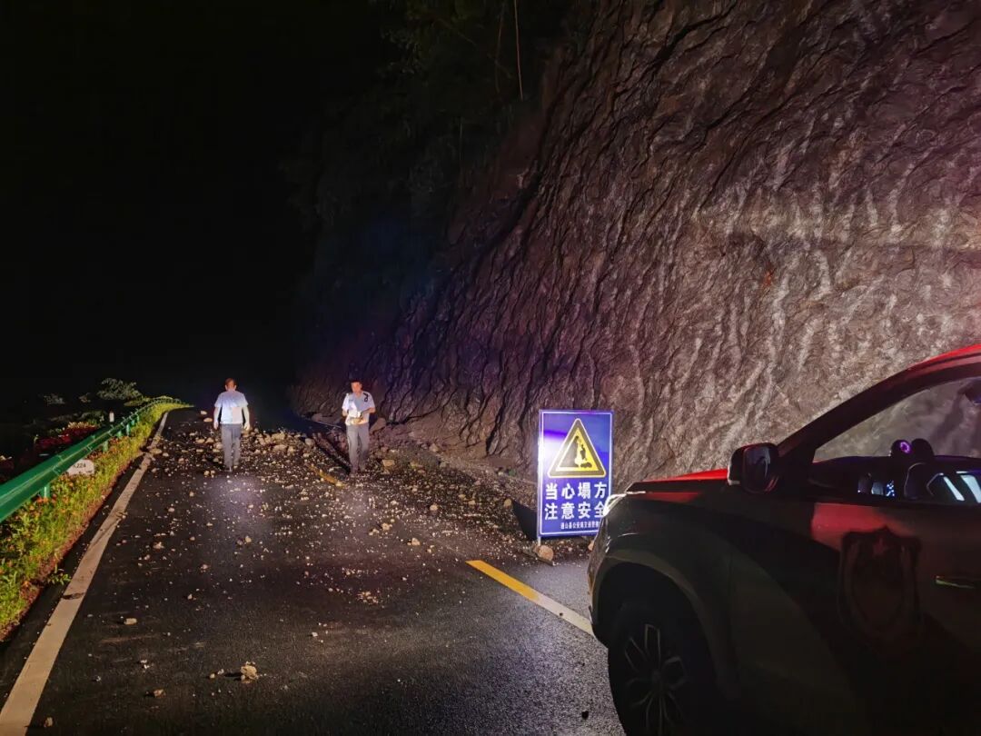 经巡查发现,辖区内北冲村、港口村、新庄村等路段出现不同程度的道路塌方、山体滑坡等情况,特别是部分临崖路段,不时有山石滚落。现场民辅警立即将相关情况向政府有关部门汇报,并在危险路段两端进行临时管制,放置警示牌,指挥、引导车辆有序通行,确保辖区道路的安全畅通。