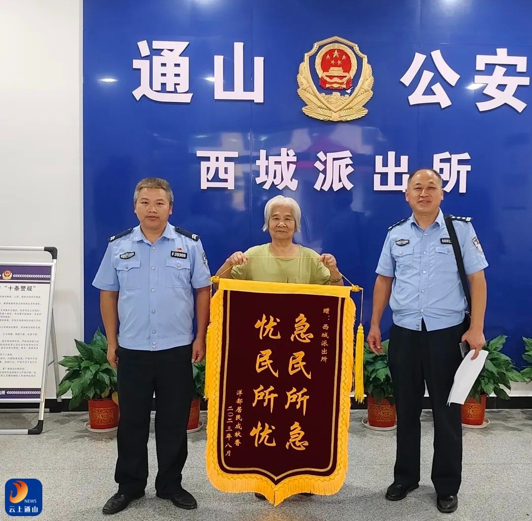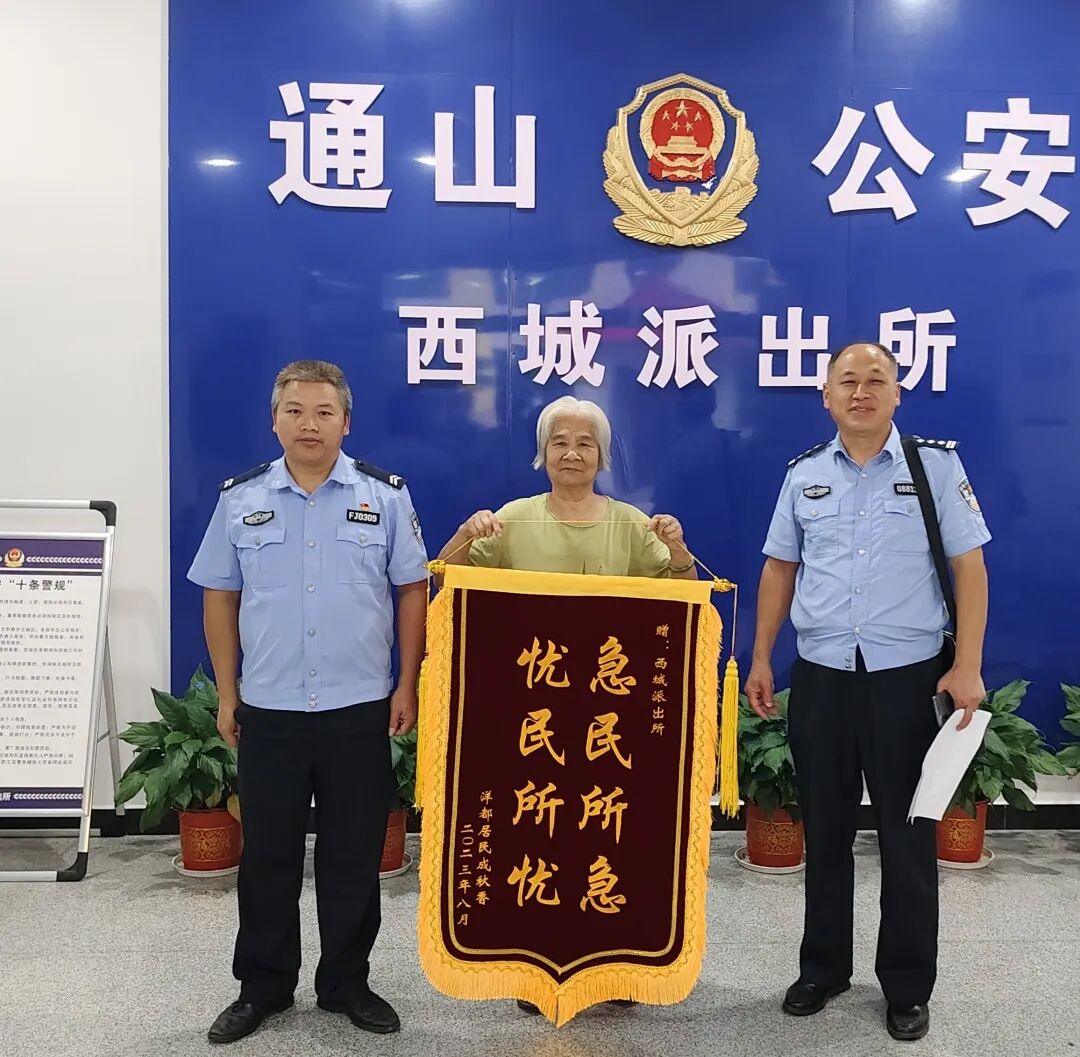 云上通山报道:8月28日,通山县公安局西城派出所成功化解一起矛盾纠纷,群众将一面印有“忧民所忧,急民所急”的锦旗送到民警手中,表示感谢。