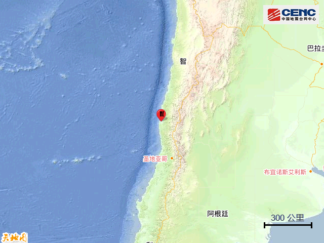周边城市:震中300公里范围内有3座大中城市,最近为科金博(Coquimbo),距震中约39公里。