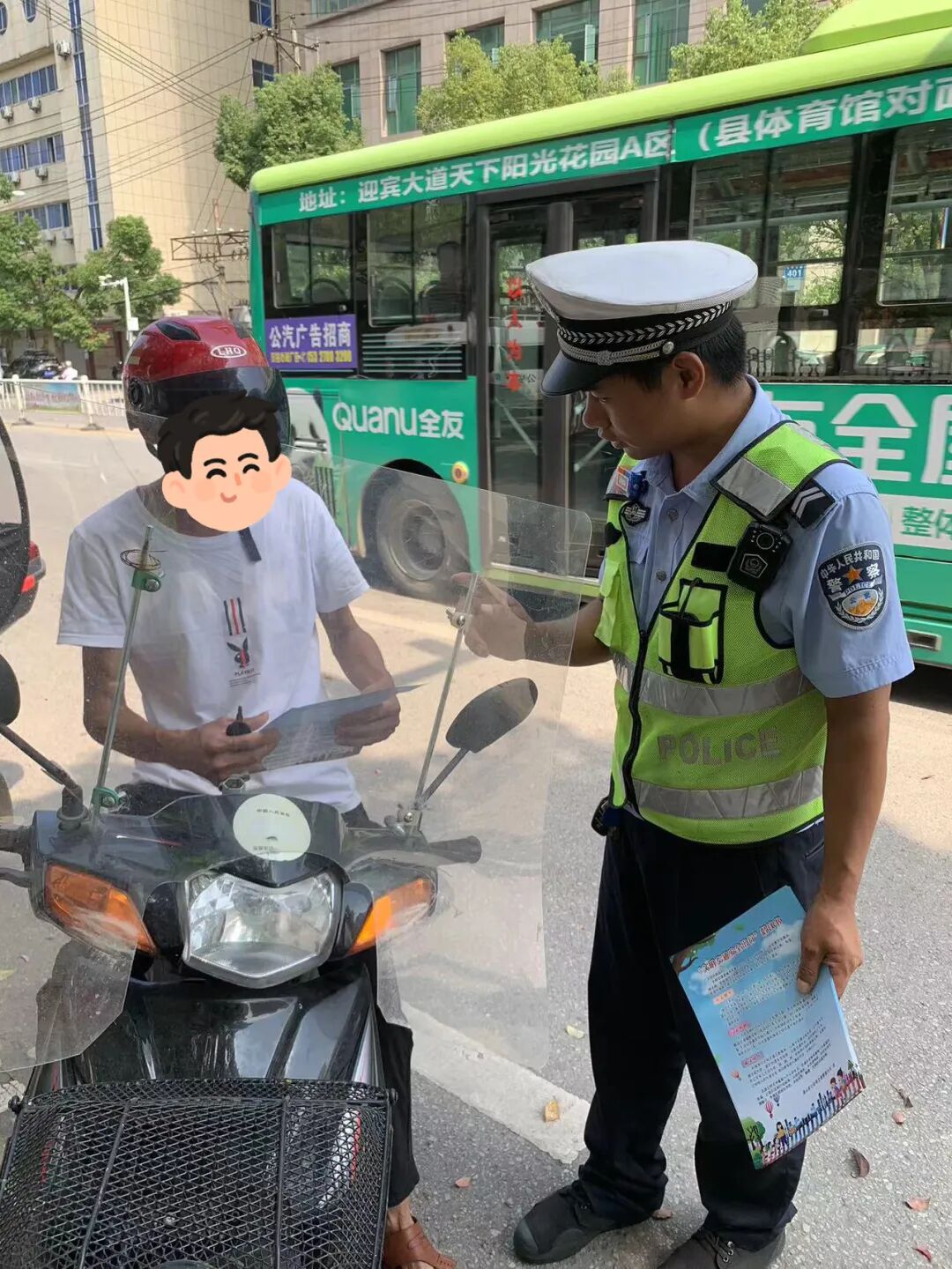 云上通山报道:为进一步提高电动自行车骑乘人员安全防护水平,促使广大群众自觉遵守法律法规避免和减少交通意外伤害,9月4日,通山县公安局交通警察大队全警全力下沉路面执勤一线,开展骑乘摩托车、电动自行车不佩戴安全头盔违法行为专项整治行动,全力守护人民群众的出行安全。