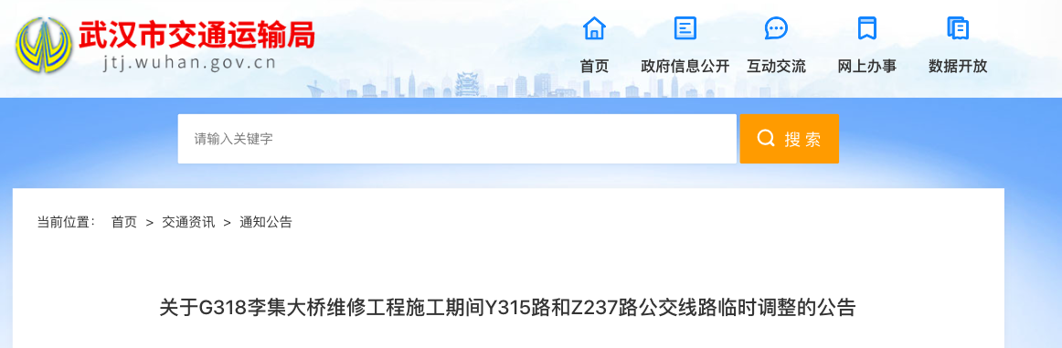 G318李集大桥维修工程将于2023年9月16日至2024年3月16日进行封闭施工,施工期间,Z237路和Y315路公交线路进行临时调整,具体如下: