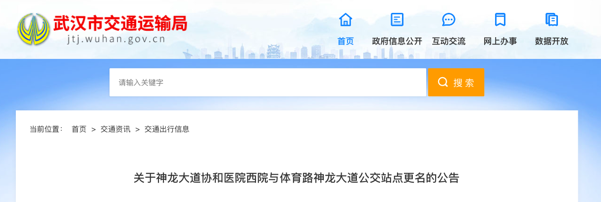 为加强站点辨识度,方便市民出行,拟从2023年9月15日起,将公交站点“神龙大道协和医院西院”更名为“神龙大道协和医院车谷院区”,“体育路神龙大道”更名为“体育路协和医院车谷院区”。
