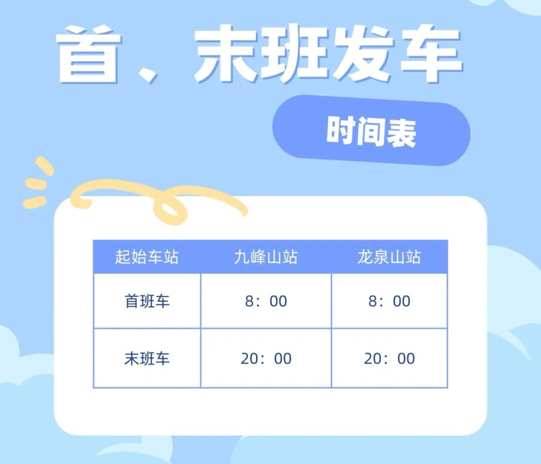 自开通次日起,首班车为早上8点,晚班车为晚上8点,发车间隔为10分钟。