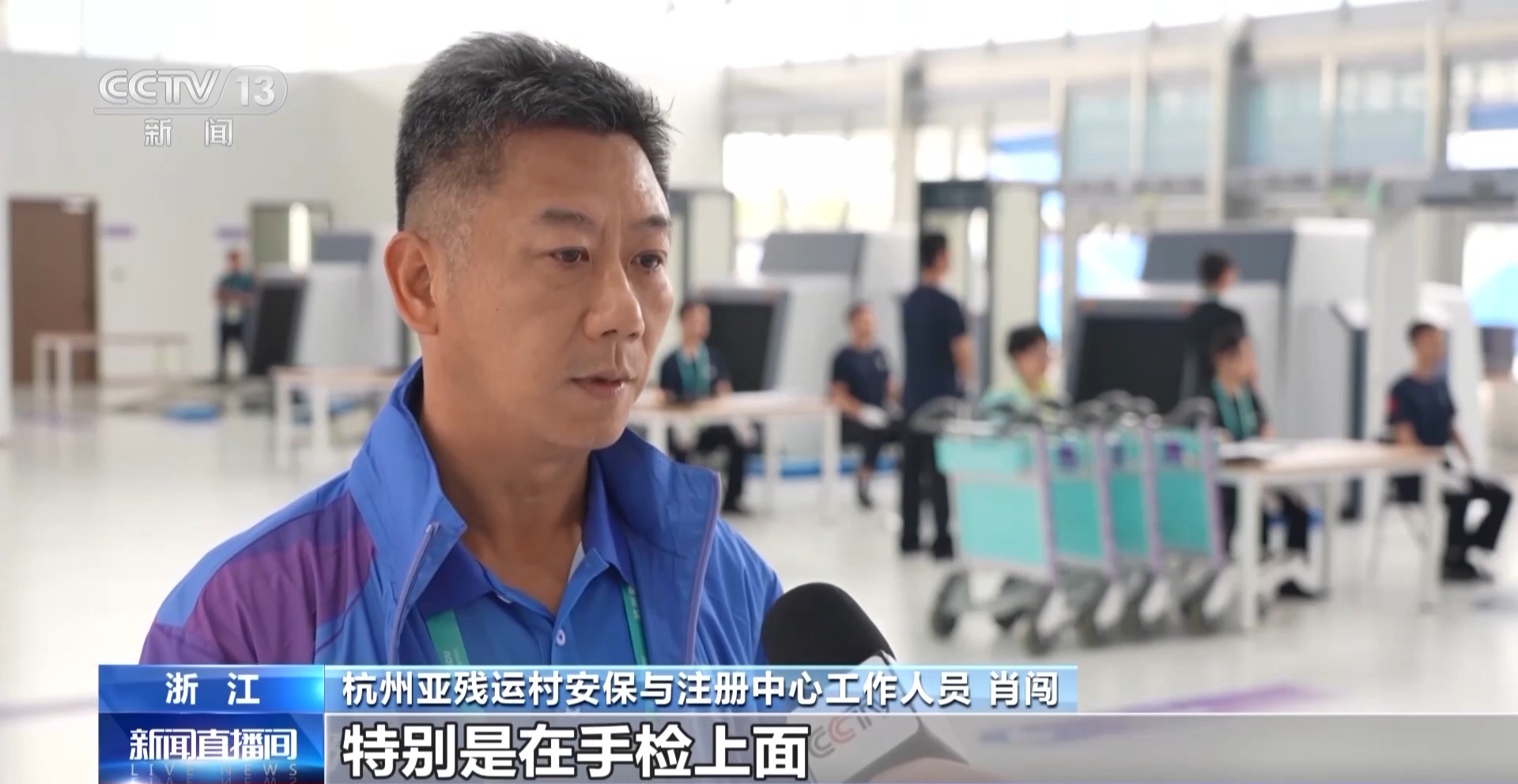 杭州亚残运村安保与注册中心工作人员 肖闯:整个安检过程,特别是在手检上面,手检员应该是要求更加高一点,有些运动员不方便,我们要求手检员主动去为运动员进行安检。