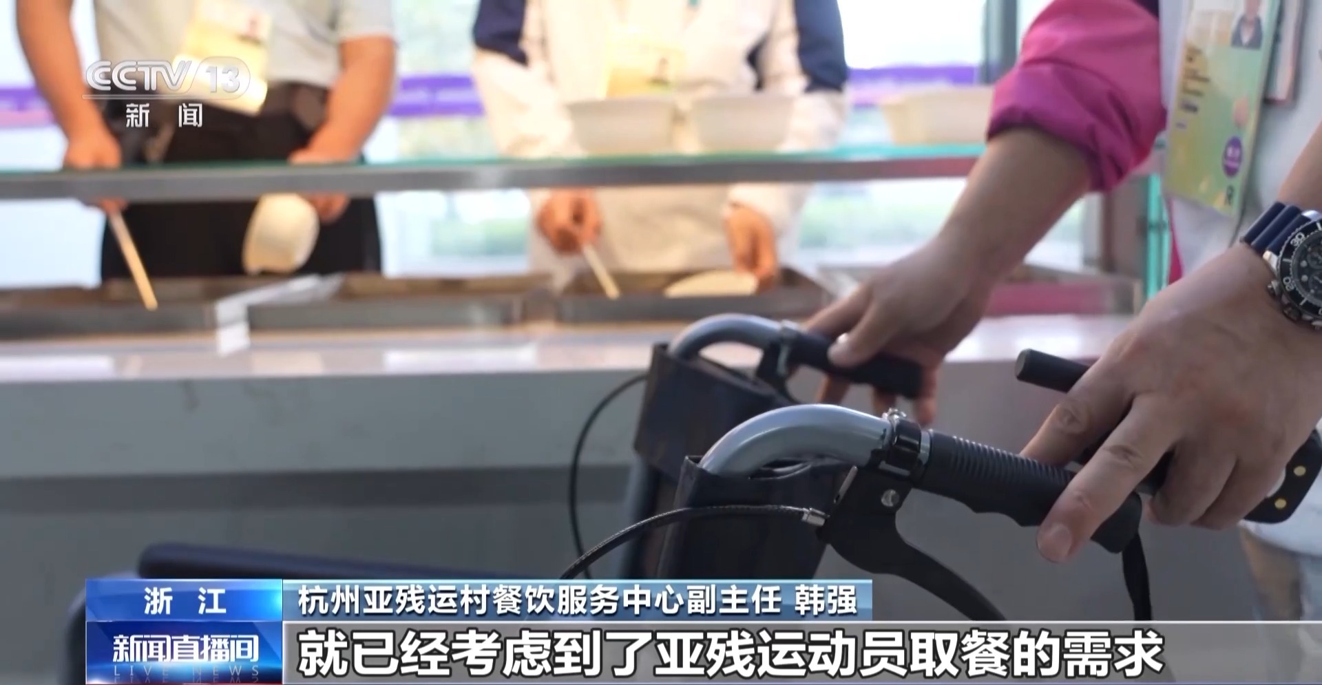 杭州亚残运村餐饮服务中心副主任 韩强:当初在亚运的时候,我们设计餐厅就已经考虑到了亚残运动员取餐的需求。我们的取餐台要比普通的取餐台矮,以方便坐轮椅的运动员看清所有的餐点,方便他们取用。当然也有志愿者会协助他们取餐。