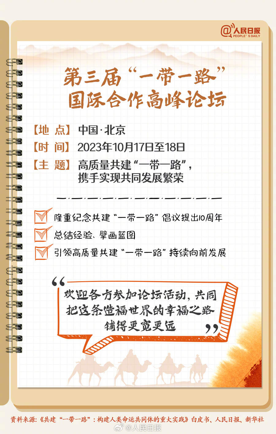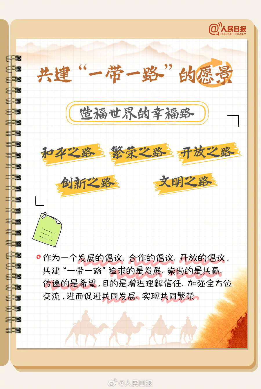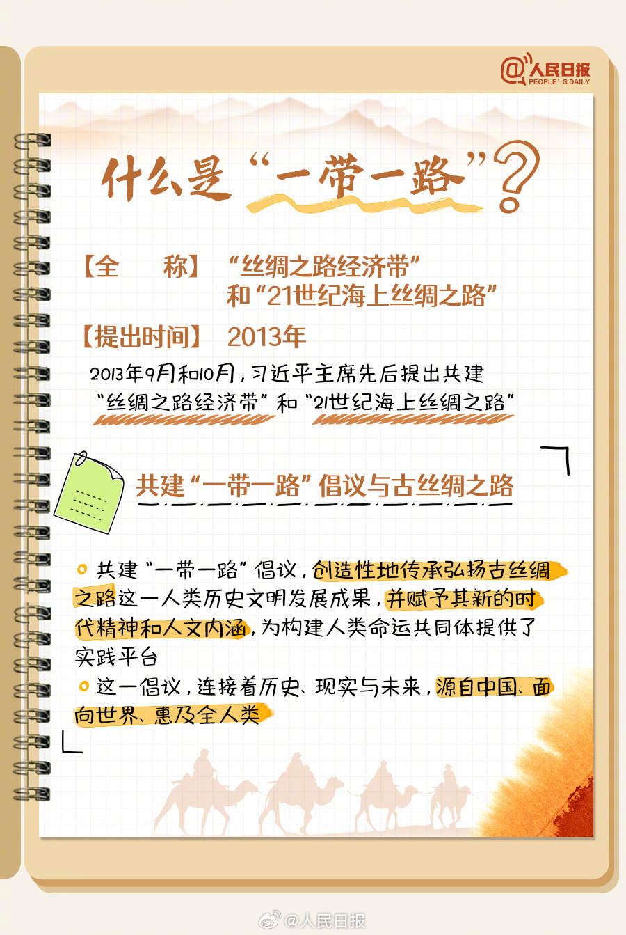 转存学习!手账版一带一路知识点 2023-10-17 10:42 0 什么是“一带一路”?共建“一带一路”的原则、理念、目标是什么?“五通”包括哪些?共建“一带一路”走过10年,取得哪些成效?10月17日至18日,第三届“一带一路”国际合作高峰论坛如约而至。这些知识点很重要,一起学习! 来源:人民日报微博