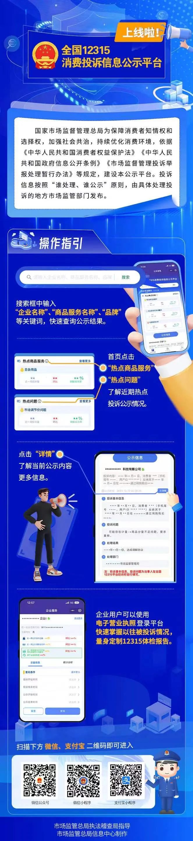 为加快建设全国统一大市场、构建新发展格局、优化消费环境,市场监管总局近日印发《市场监督管理投诉信息公示暂行规则》,上线全国12315消费投诉信息公示平台,部署全国市场监管部门开展消费投诉公示。