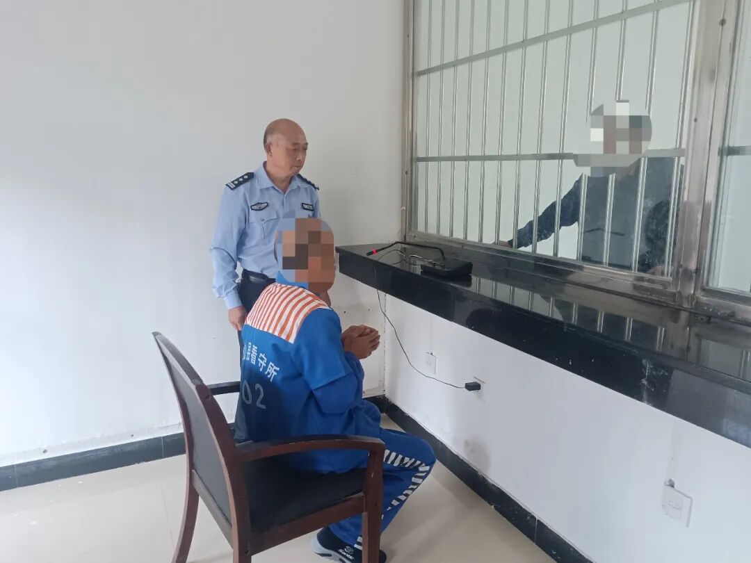 会见中,负责在场监视的民警向在押人员及其家属宣布了注意事项,即将投牢的17名已决罪犯在押人员依次会见各自的亲人家属。