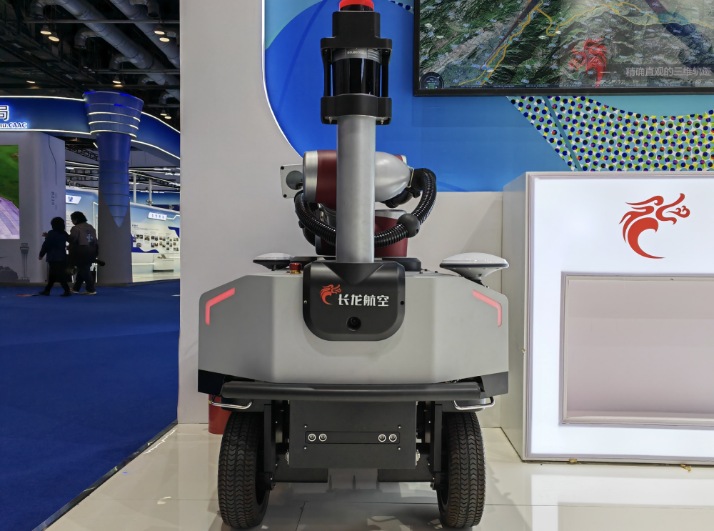 首届CATA航空大会上,长龙航空展示的飞机智能巡检机器人。新华社记者王聿昊 摄