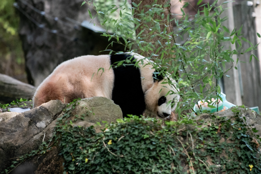 这是9月30日在美国华盛顿史密森学会国家动物园拍摄的大熊猫“添添”。