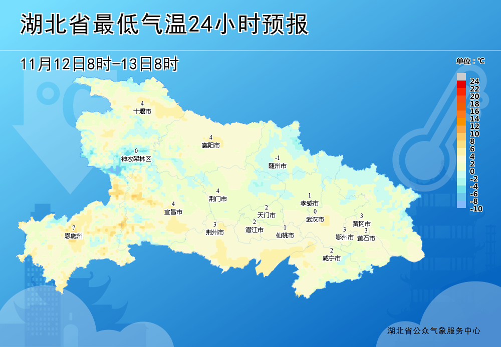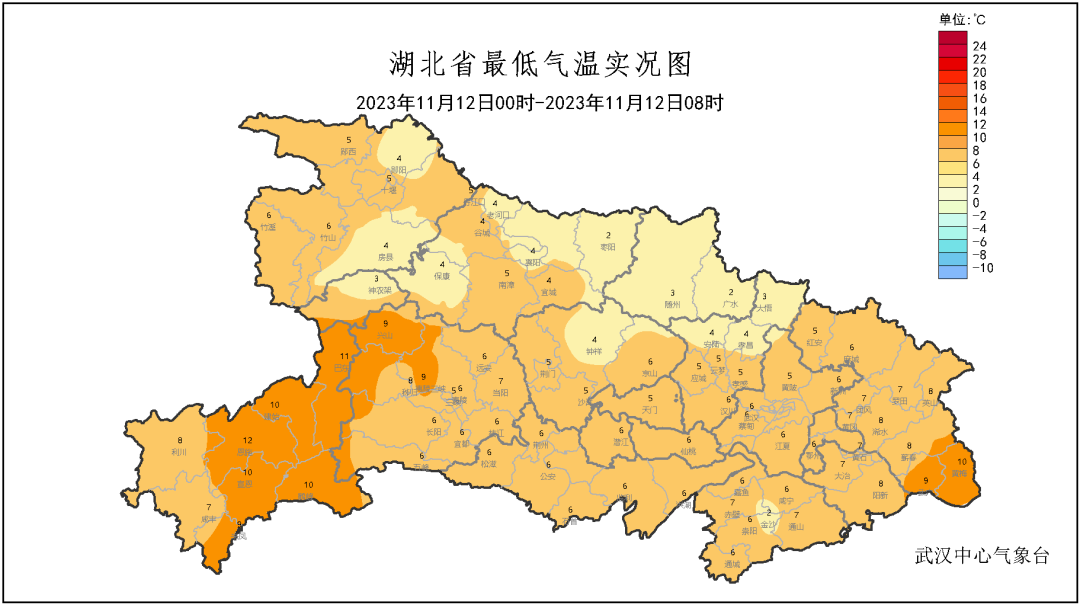 湖北省内大部低温仅3~9℃