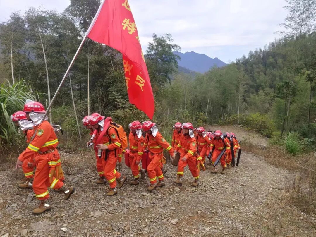 途中,干部骨干率先垂范、党员模范身先士卒,秉持“刀山敢上、火海敢闯”的战斗精神,带领队伍一道并肩前行,全体参战队员普遍都是负重20斤左右的器材,更有甚者背负30多斤重的水泵,爬陡坡、穿密林、跨山沟、趟沟渠,汗水浸湿了衣服,但身体的疲惫淹没不了满腔热血,无一人放弃,无一人退出,全体参战队员精神饱满、士气高昂,有条不紊,齐装满员直至任务完成。