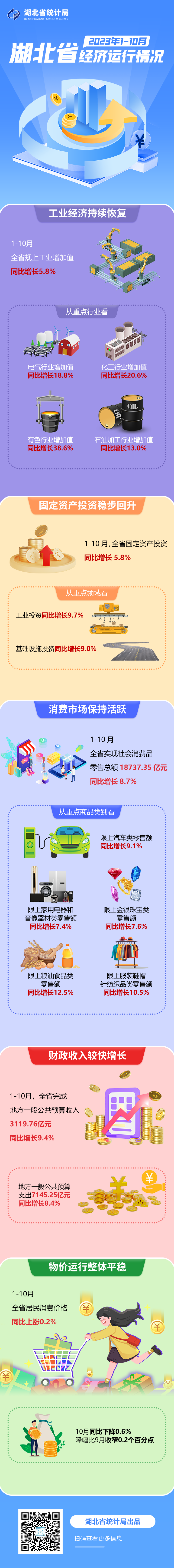 今年前十月,湖北省规上工业增加值同比增长5.8% 2023-11-17 15:46 0 今天(11月17日),长江云新闻记者从湖北省统计局了解到,今年1月-10月,全省规上工业增加值同比增长5.8%;固定资产投资同比增长5.8%;实现社会消费品零售总额18737.35亿元,同比增长8.7%。 (来源:长江云新闻)