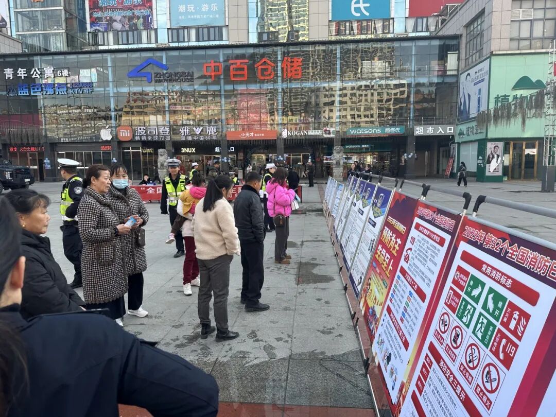 活动中,公安民警在万成广场设立宣传点,通过悬挂宣传横幅、摆放宣传立牌、发放消防安全常识、防范电信诈骗宣传单的方式向过往群众进行宣传。