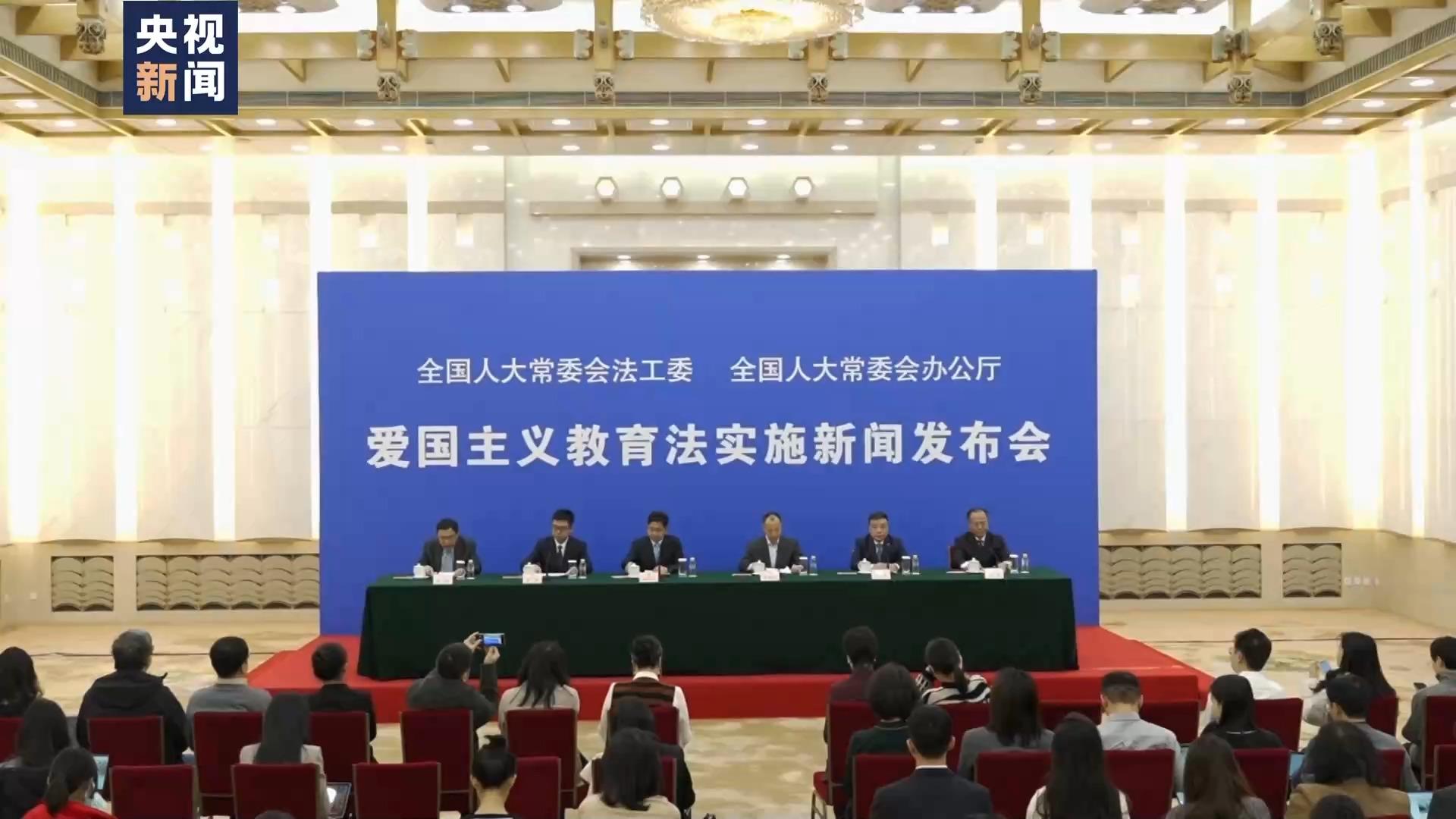 今年10月24日,十四届全国人大常委会第六次会议审议通过了爱国主义教育法,该法将于2024年1月1日生效实施。12月21日,全国人大常委会法制工作委员会等五部门共同举办新闻发布会,对法律实施的核心制度等内容进行全面解读。