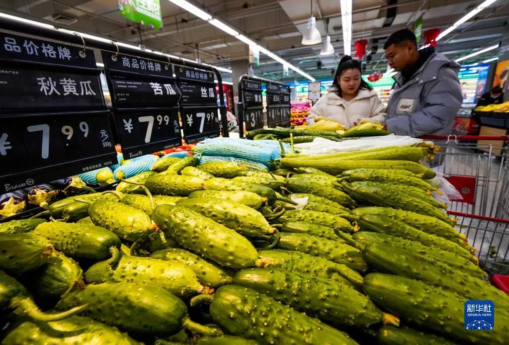 12月17日,顾客在河北省遵化市一家超市选购蔬菜。当地在寒潮天气下采取蔬菜外运、内供两手抓的办法,做好本地蔬菜外运和外地蔬菜调剂内供工作,保障人民生活需要。图片来源:新华社